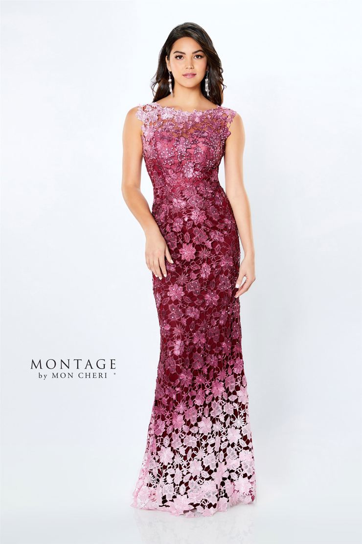 This wow-worthy sleeveless ombre Venise lace fit and flare gown offers a lace illusion bateau neckline over a sweetheart bodice, a natural waistline, a deep V-back, stone accents and a scalloped lace hemline. Separate short sleeves are included.